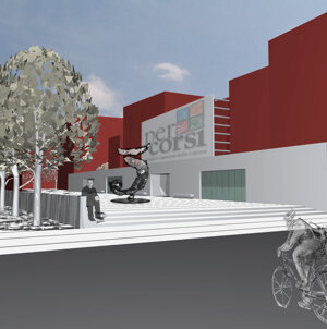 La nuova configurazione della piazza risulta così caratterizzata dalla presenza di queste “due punte” che riescono dare unicità a questo spazio mettendo così in relazione due porzioni di tessuto urbano da sempre adiacenti ma prive di elementi di dialogo.