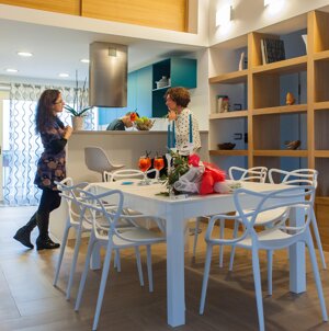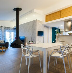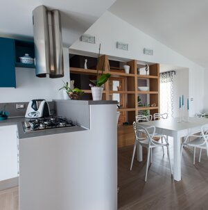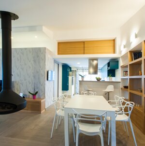 The construction of this house in Calascibetta, a small town in central Sicily, was yet another interesting opportunity to build in built. The project was realized thanks to the application of the law Art.18 of L. R. 4/2003. The objective of the law is to limit the consumption of new territory and to facilitate the implementation of technological steps for the containment of energy consumption. The project complies also two fundamental constraints in order to comply economies: the maintenance of the existing openings and the previous location of the key points for the water systems. Another element characterizing the original space was the pitched roof. This type of roof made the space and its subdivision uneven. The project meets the needs of the client: a young couple with a clear vision and contemporary way of living. The new set of spaces provides the formation of two spaces that establish between their different hierarchies: a public part of the house, where a living area open organization, finds its heart in place of a suspended fireplace; a private part that houses the bedrooms and a small study. Customized design and construction of some wooden furniture, such as wall filter between the entrance area and the living area or the storage units in the top of the kitchen and under the TV, has allowed even more to emphasize the sense of continuity and of the unique space required by the client.